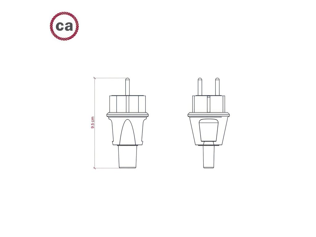 Čierna schuko zástrčka z termoplastu, ideálna na zostavenie vlastného šnúrového svietidla. Má jednoduché rozoberanie/skladanie s použitím iba 1 skrutky, jednoduchý spôsob zapojenia kábla.
