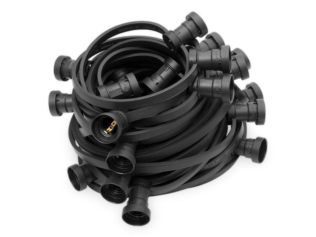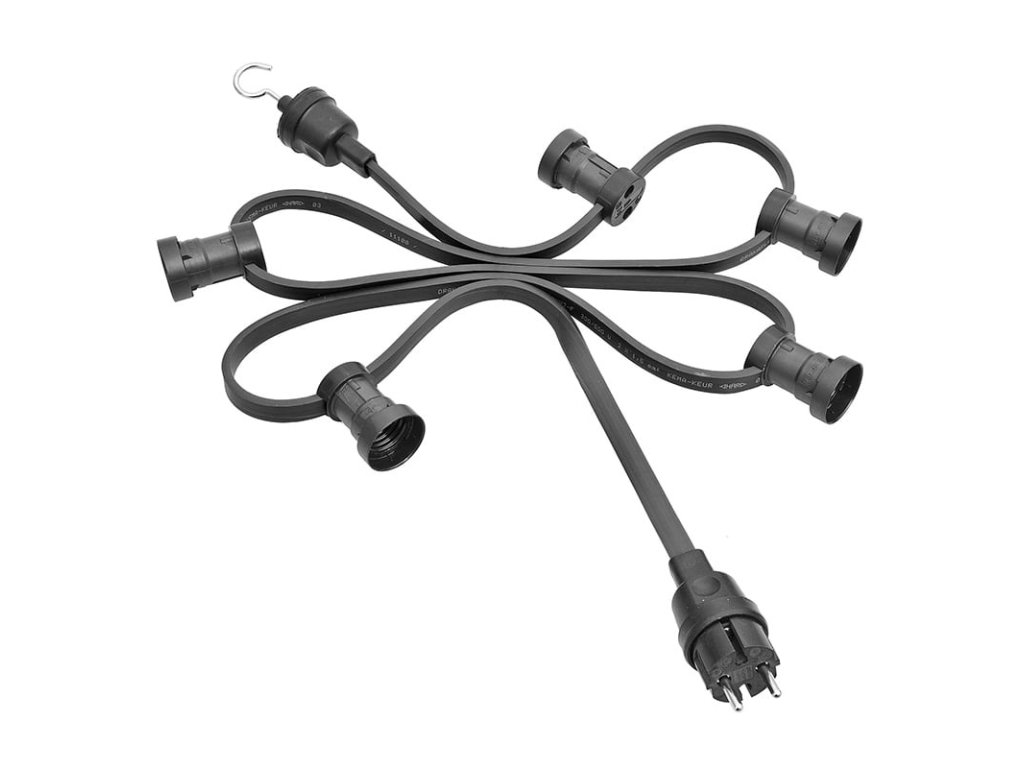 Žiarovkový závesný plochý kábel spolu s objímkami slúži na výrobu osvetlenia do interiérov aj exteriérov. Ma širokú škálu využitia od pouličnej vianočnej výzdoby, osvetlenia letných terás reštaurácií alebo kaviarní až po osvetlenie výrobných hál alebo ako dočasné osvetlenie stavieb. Vďaka objímkam s napichovacími hrotovými kontaktmi je montáž rýchla a bez potreby odizolovania vodičov. Môžu byť použité žiarovky o maximálnom výkone 40 W. Krytie hotového osvetľovacieho kábla je IP 44 (je potrebné použiť silikónové alebo gumené tesnenia).